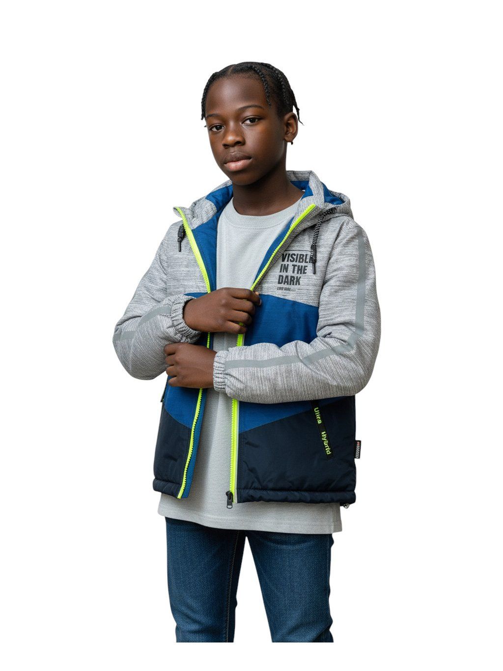 Táto chlapčenská bunda má reflexné detaily, aby bolo vaše dieťa dobré viditeľné v tmavom prostredí.