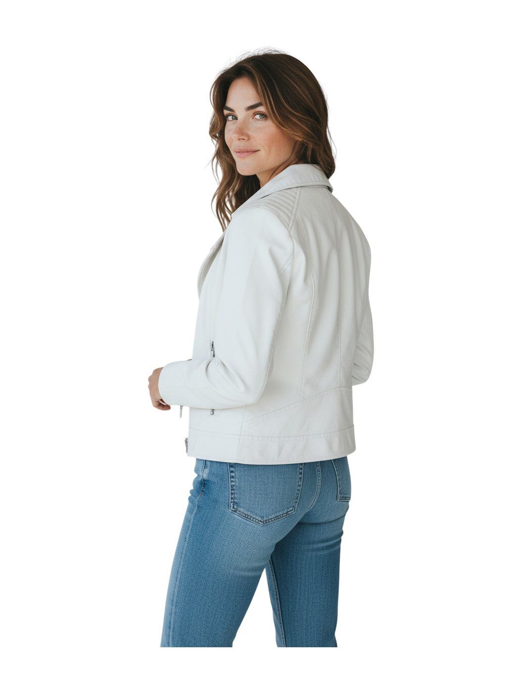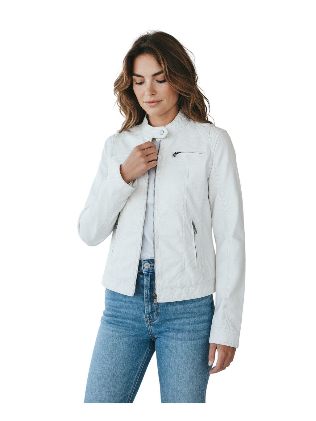 Dámska biela koženková bunda 01