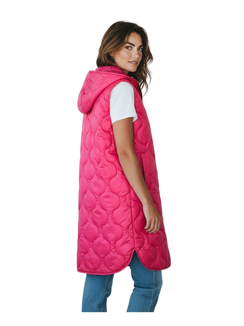 Dámska ružová zateplená prešívaná nadmerná vesta EVA
