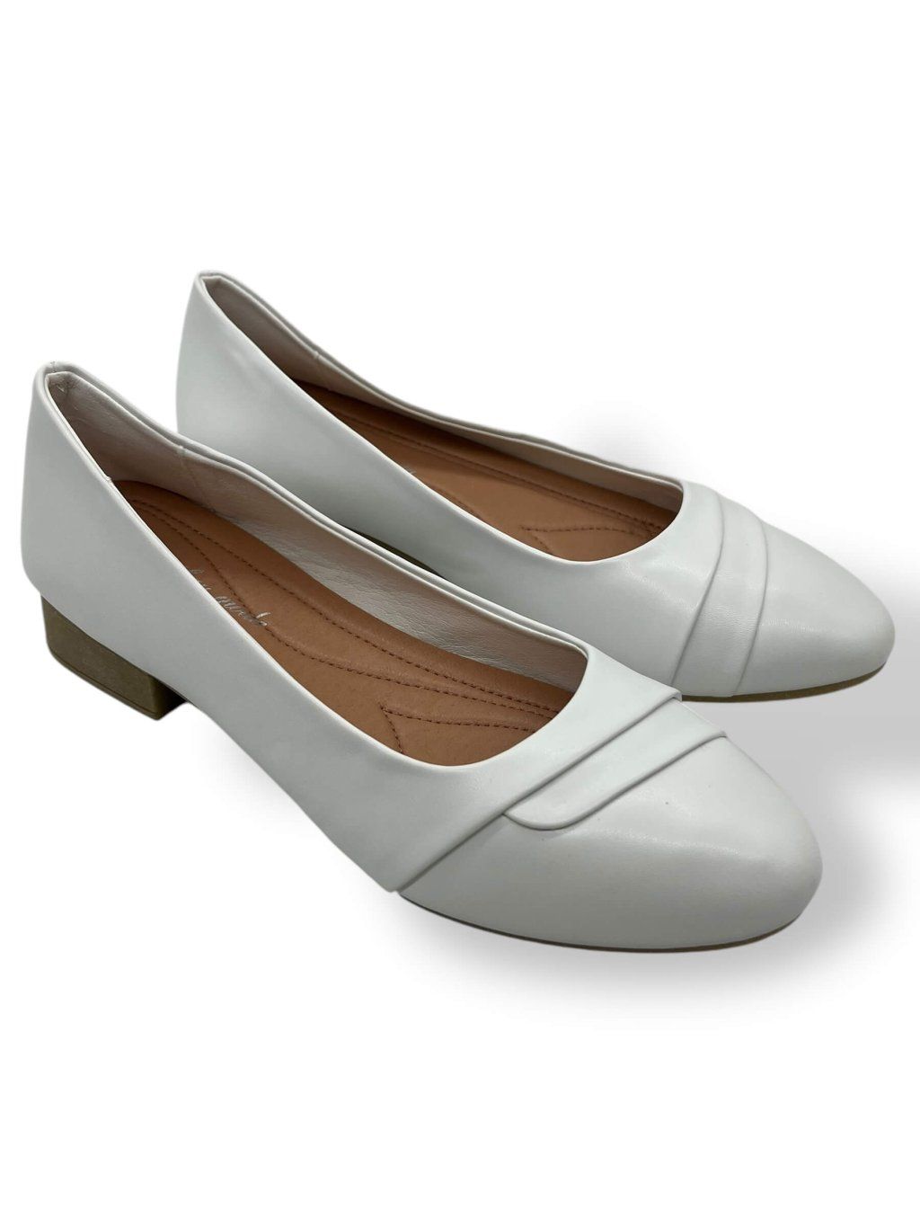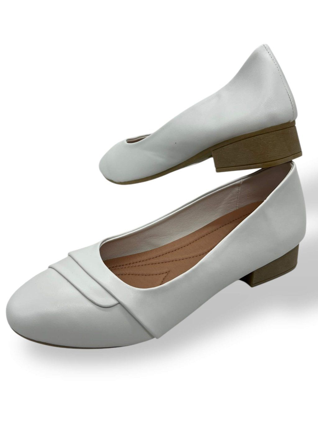 Dámske biele baleríny na nízkom podpätku