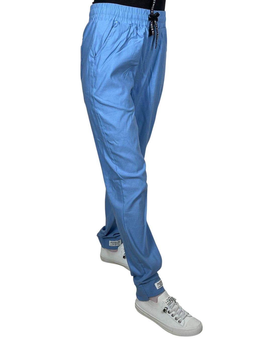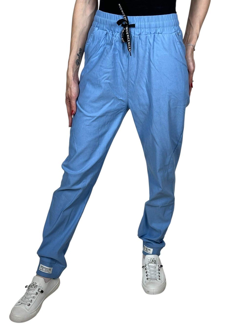 Dámske nohavice ANNA ponúkame v farbách, biela, čierna, modrá, mentolová, ružová, sivá a tyrkysová.