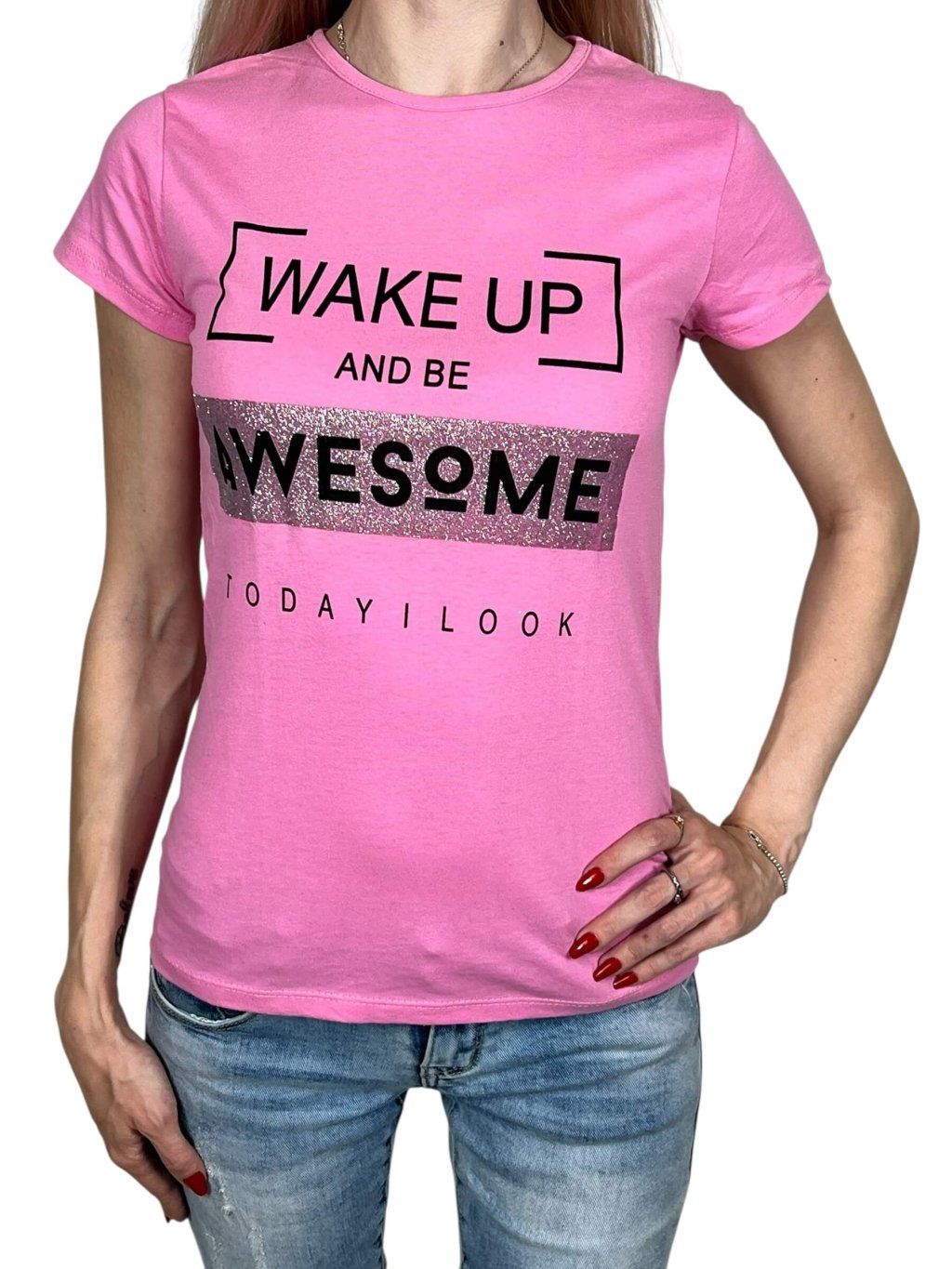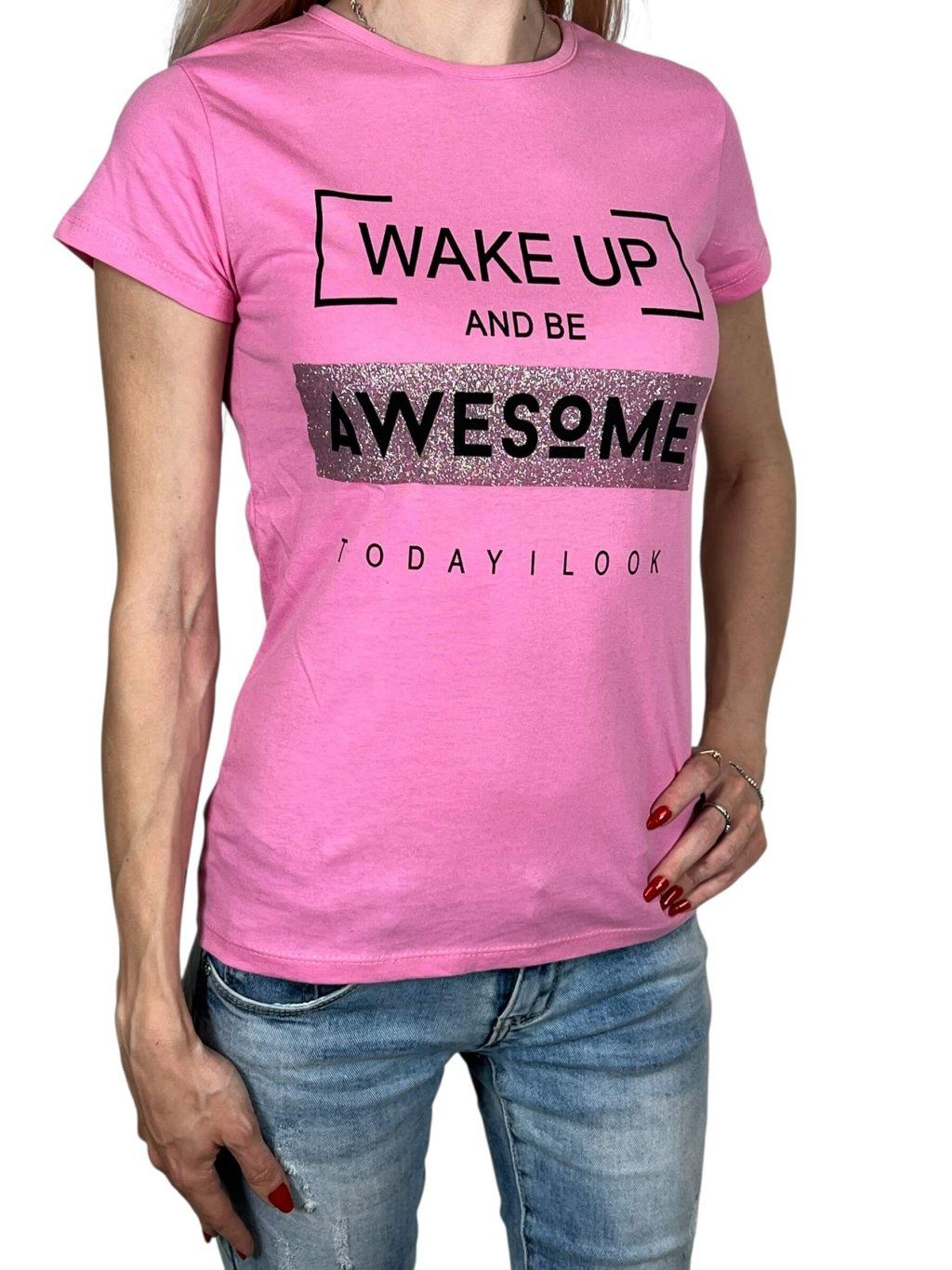 Dámske ružové tričko s krátkym rukávom AWESOME