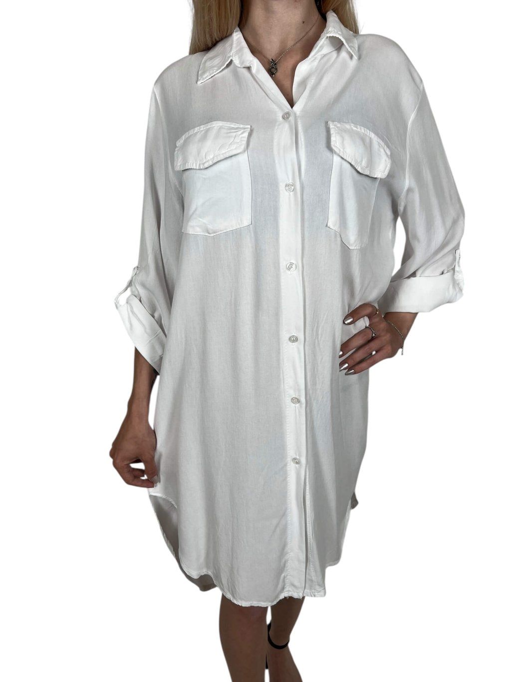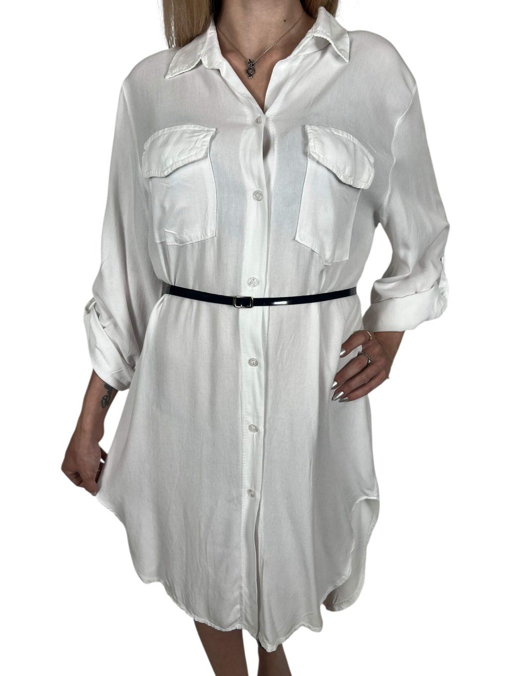 -  Modelka má na sebe veľkosť UNI