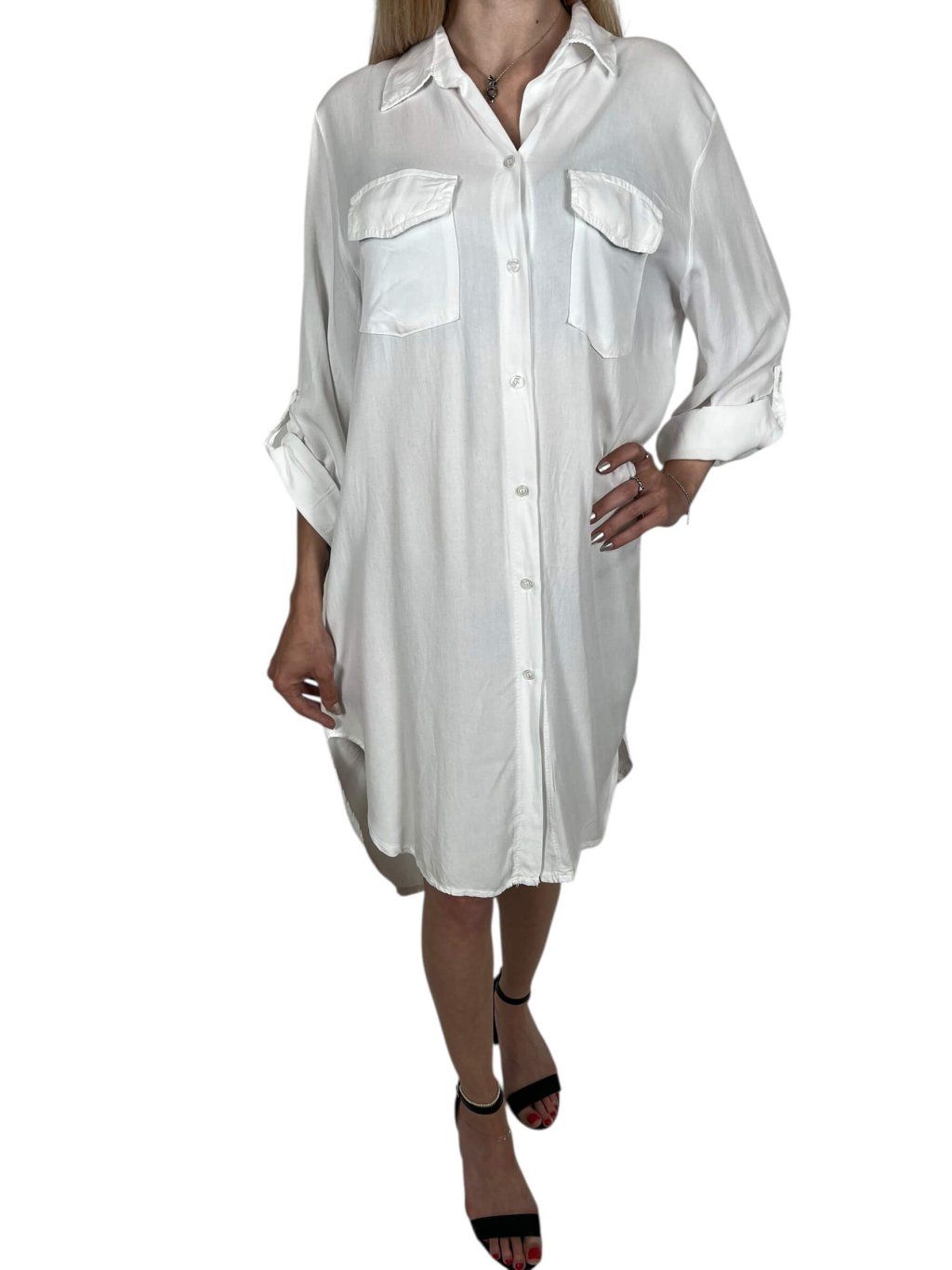 Dámske šaty EVELINA ponúkame v farbách, biela, čierna, fuchsiová, ružová, sivá a zelená.