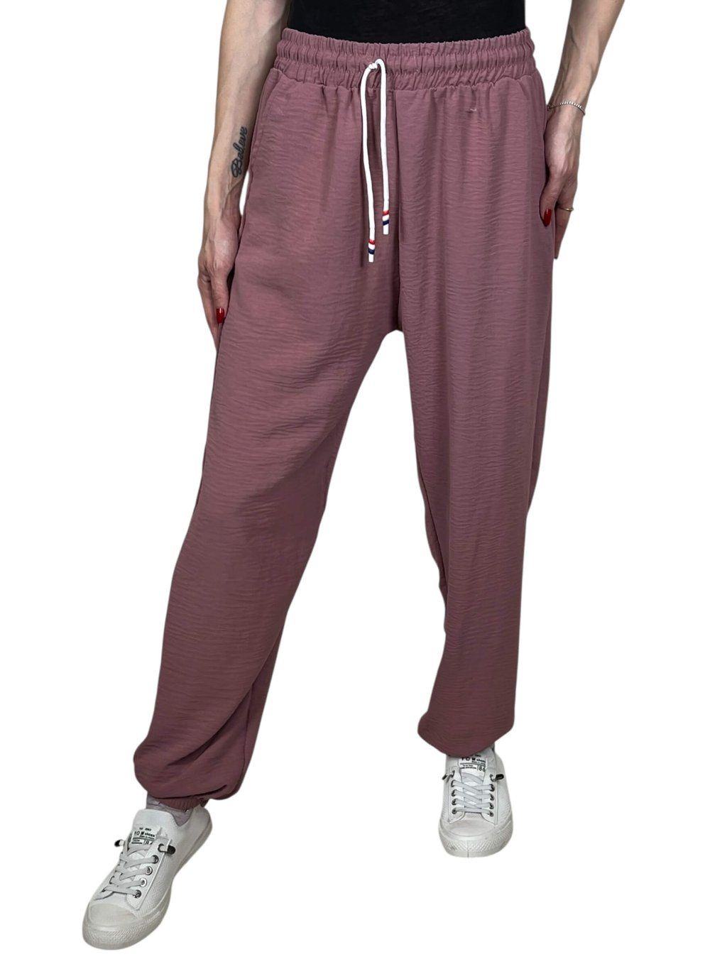Elegantné a pohodlné dámske nadmerné tepláky – spojenie štýlu a voľnosti. Ideálne pre každodenné pohodlie so širším strihom a moderným dizajnom pre ženy, ktoré milujú slobodu a výrazný vzhľad.