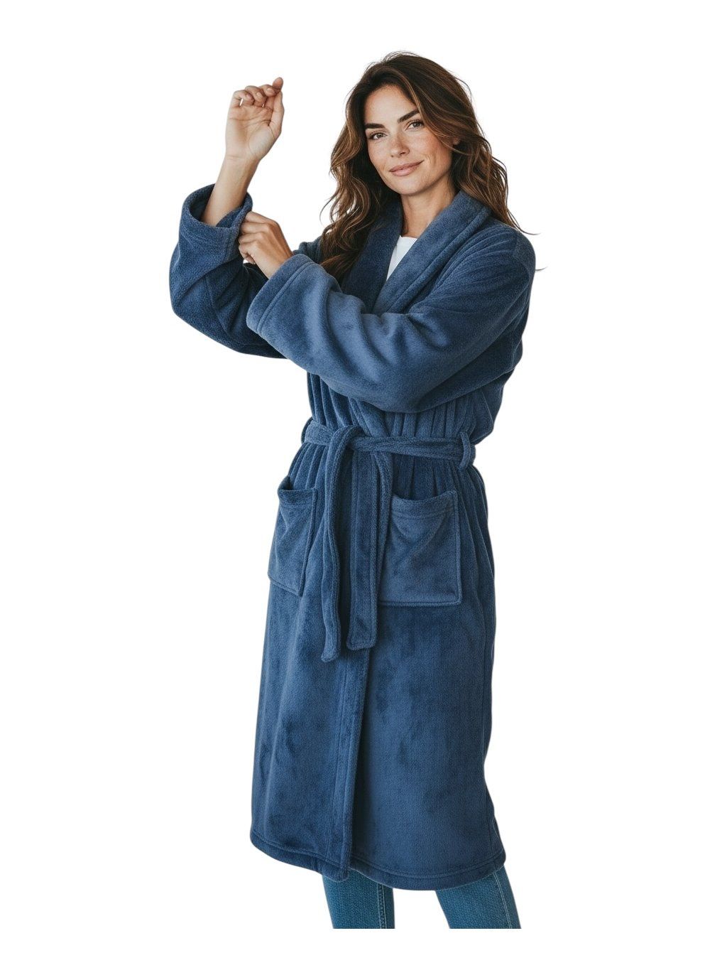 Dámsky modrý mikroplyšový župan 02