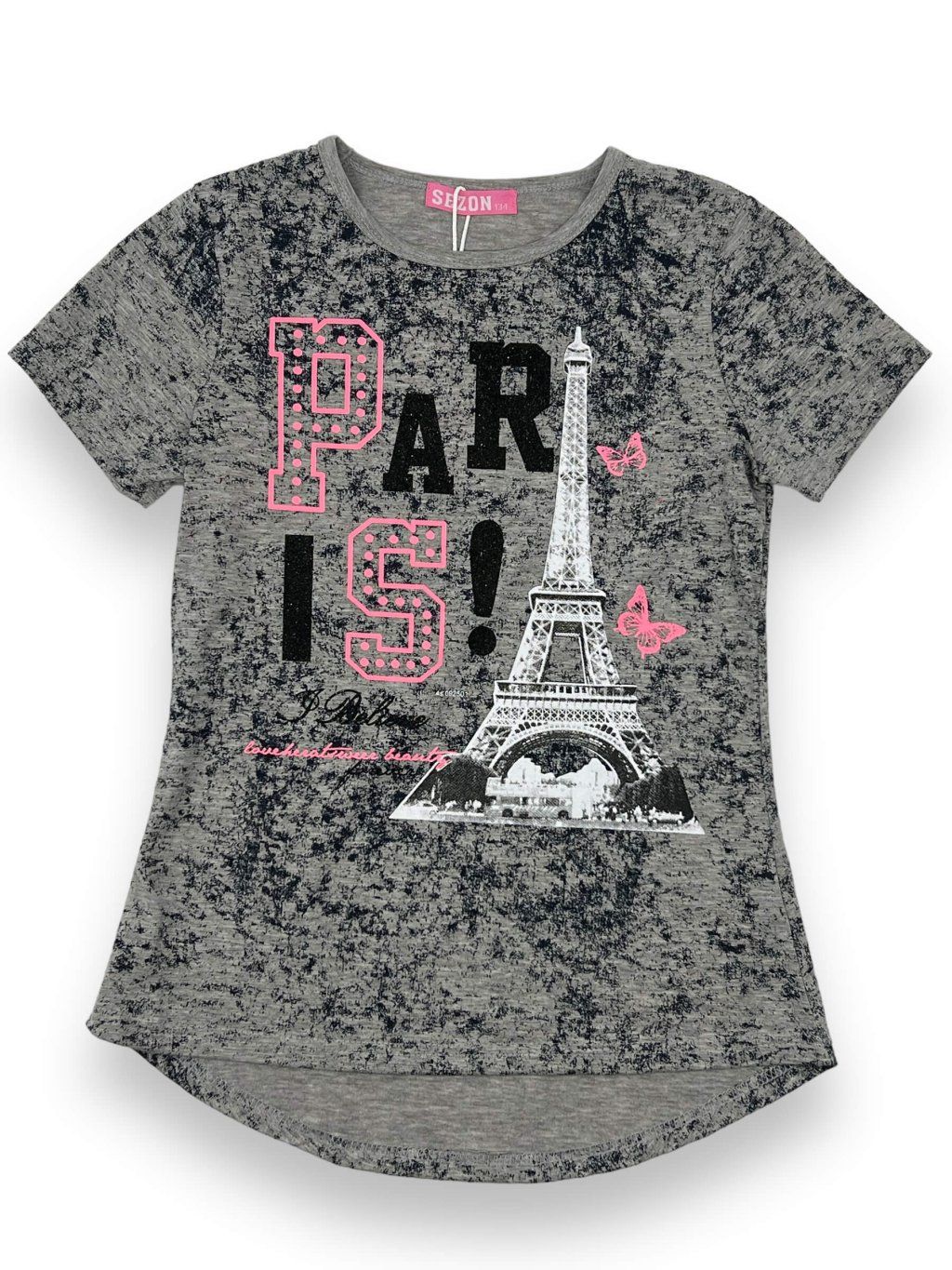 Dievčenské tričká PARIS ponúkame v farbách ružová a sivá.