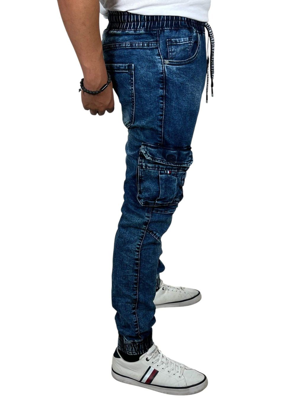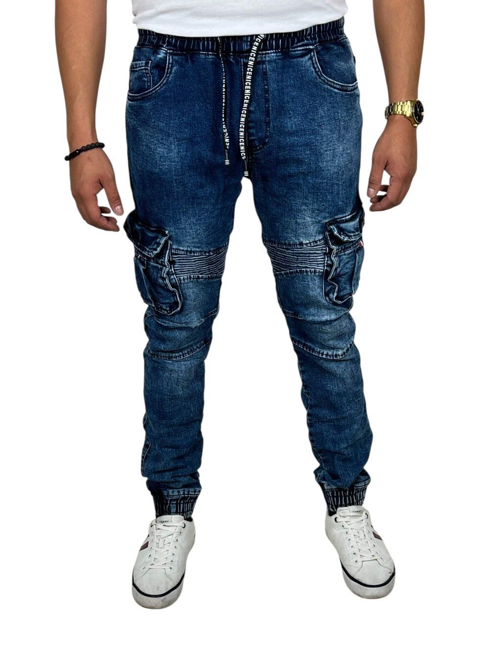Pánske elastické modré džínsy s pohodlnou gumou v páse