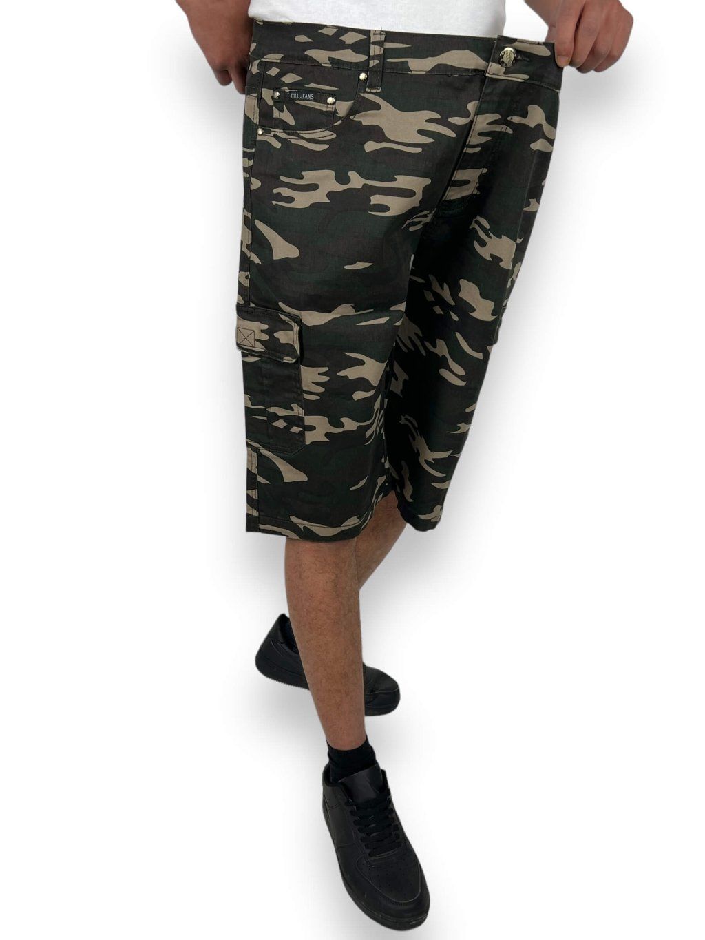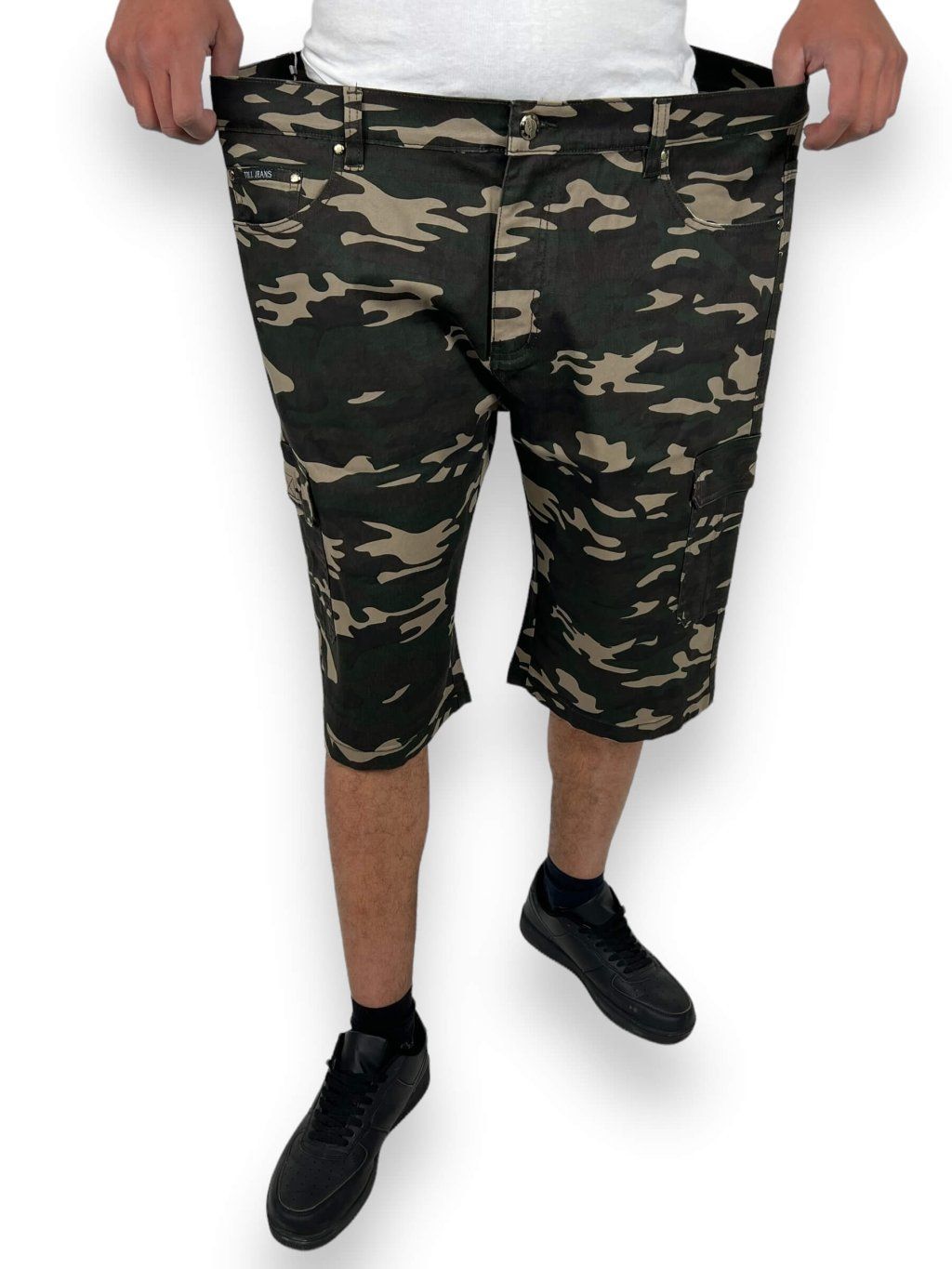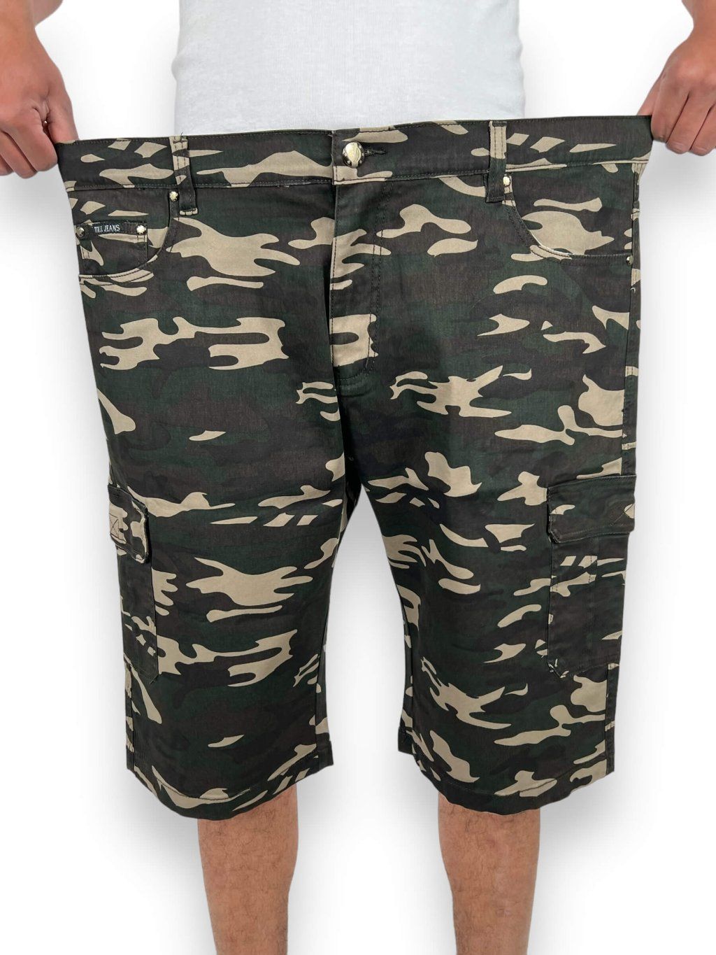 Pánske maskáčové nadmerné džinsové šortky