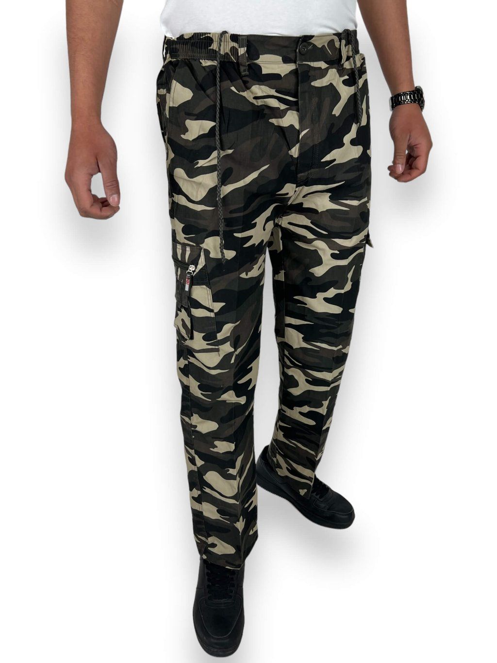 Pánske maskáčové nadmerné plátené nohavice