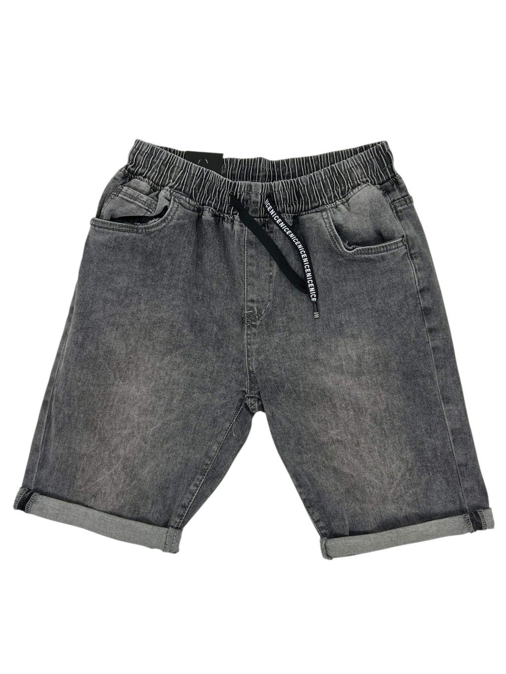 Pánske sivé džinsové šortky na gumu